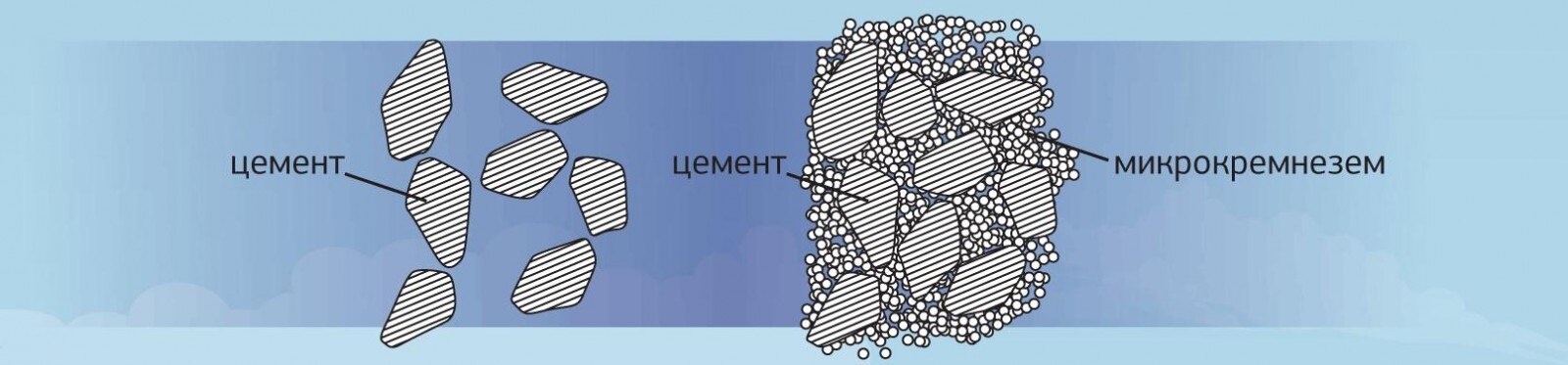 Материал применяется для создания максимально прочного бетона. Эффект прочности достигается путем заполнения микроскопических пустот в цементе частицами микрокремнезема. При этом увеличивается сцепление бетона с поверхностью.